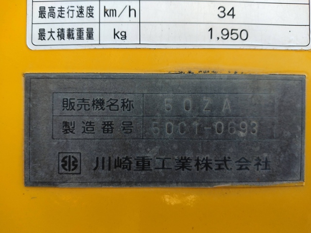 DETAIL 1 2 3 ► Maker KAWASAKI Model 50ZA Serial No. 50C1-0693 Year 1999 Hour 6714 Place Yokohama お見積・在庫のお問い合わせ 在庫情報